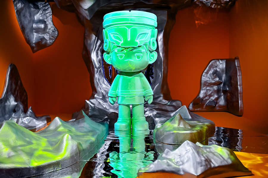 艺术方面,在上海市文化和旅游局指导下,由上海博物馆和巨星传奇主办、久事文传协办,并特别邀请方文山先生担任文化创意顾问的“了不起的老祖宗——周同学的时空奇遇记”主题艺术秀创新实现了“传统文物+潮流IP+数字科技”的跨界融合,圈粉大批年轻人。艺术秀以“周同学”为叙事线索,将12件馆藏珍贵文物与现代科技深度结合:通过AI光影营造沉浸式文物场景,借助全息投影精细还原文物细节,设置VR修复体验让观众 “亲手参与文物保护”,更搭配机器人互动、NFC数字抽卡等趣味环节。活动不仅让观众直观感“科技与文物的碰撞”,更激发社交分享热情。